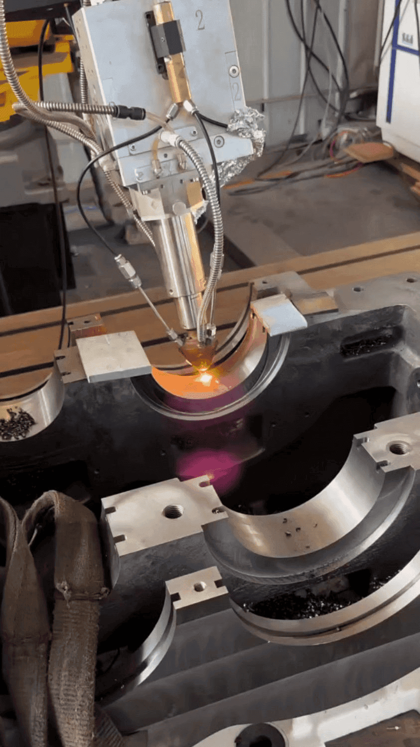 Laser cladding is also useful for repairing the internal surfaces of mine car bearing housings, connecting holes, and other components. The process improves hardness and wear resistance, reducing the frequency of replacement and the associated costs.