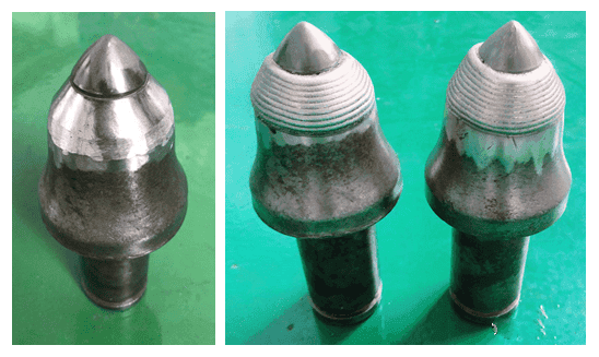 La dureza original de la zona a reparar del pico de la broca de la máquina de minería de carbón es de aproximadamente HRC50. Después del tratamiento de revestimiento, el efecto se muestra en la figura siguiente. La dureza de la capa de revestimiento ha alcanzado HRC55 después de la prueba.